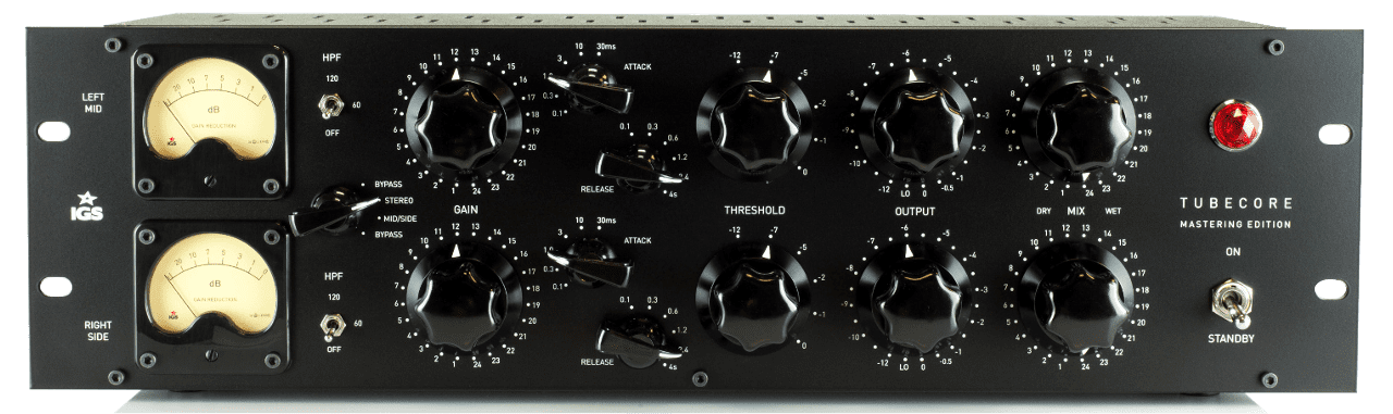 IGS Tube Mastering Compressor based on “Holy Grail” of compressors circuit “Fairchild 670” Abbey Road Studios (The Beatles, Pink Floyd – Dark Side Of The Moon) IGS TUBECORE is handmade compressor with high quality matched components allows to work in sidechain, parallel compression and mid/side mode (M/S) It is equipped with 6N1P-EW NOS Tubes and individually calibrated to give you the unique and unspoiled experience of one of the best Vari-Mu compressors in history.